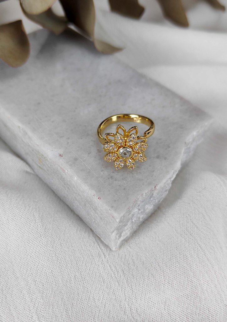 Δαχτυλίδι ατσάλι λουλούδι στρας περιστρεφόμενο
