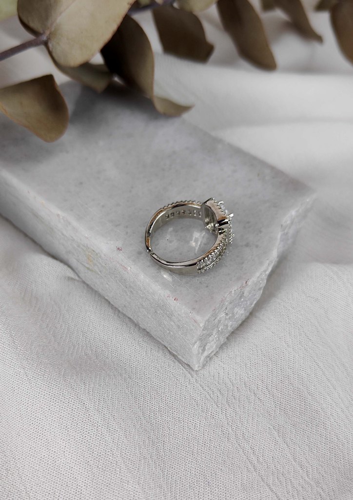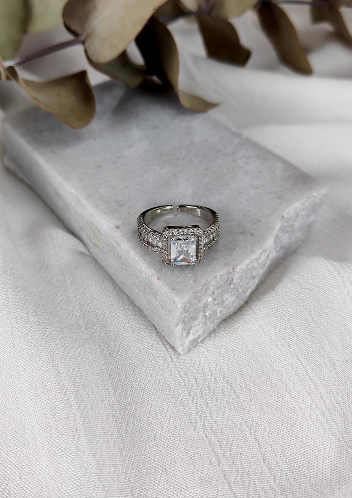 Δαχτυλίδι ατσάλι τετράγωνο σειρές στρας