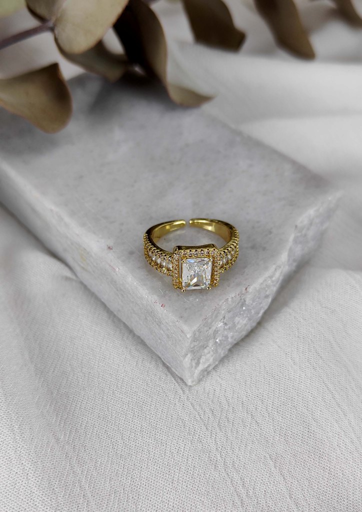 Δαχτυλίδι ατσάλι τετράγωνο σειρές στρας