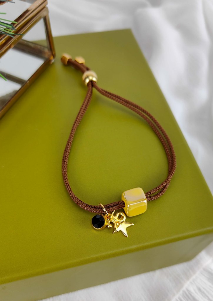 Γούρι 26 βραχιόλι κορδόνι πέτρα καφέ