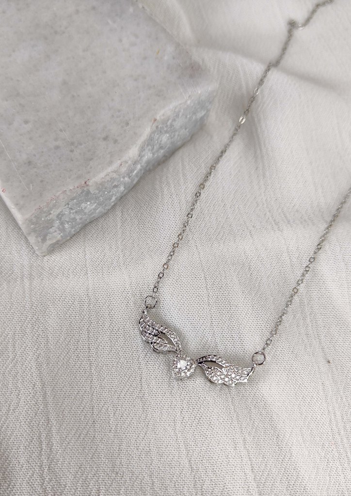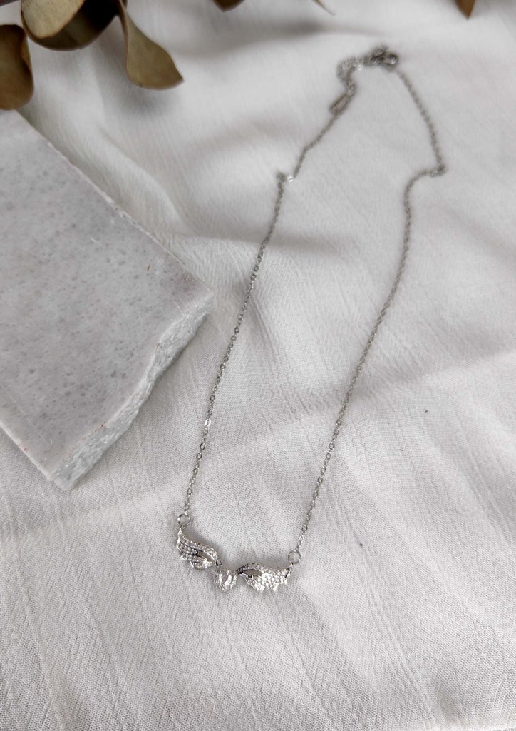 Κολιέ αλυσίδα ατσάλι φτερά καρδιά στρας ασημί
