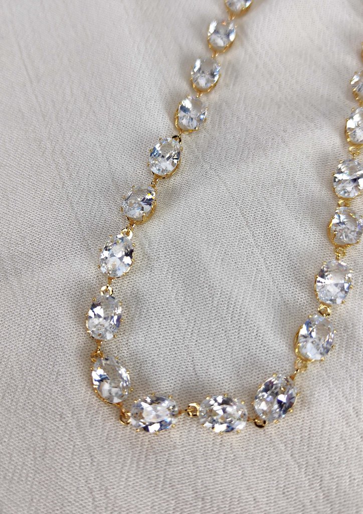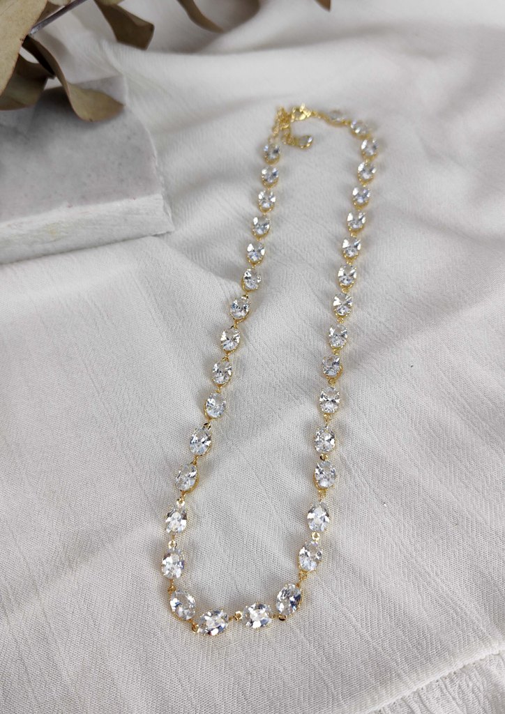 Κολιέ αλυσίδα ατσάλι οβάλ στρας χρυσό