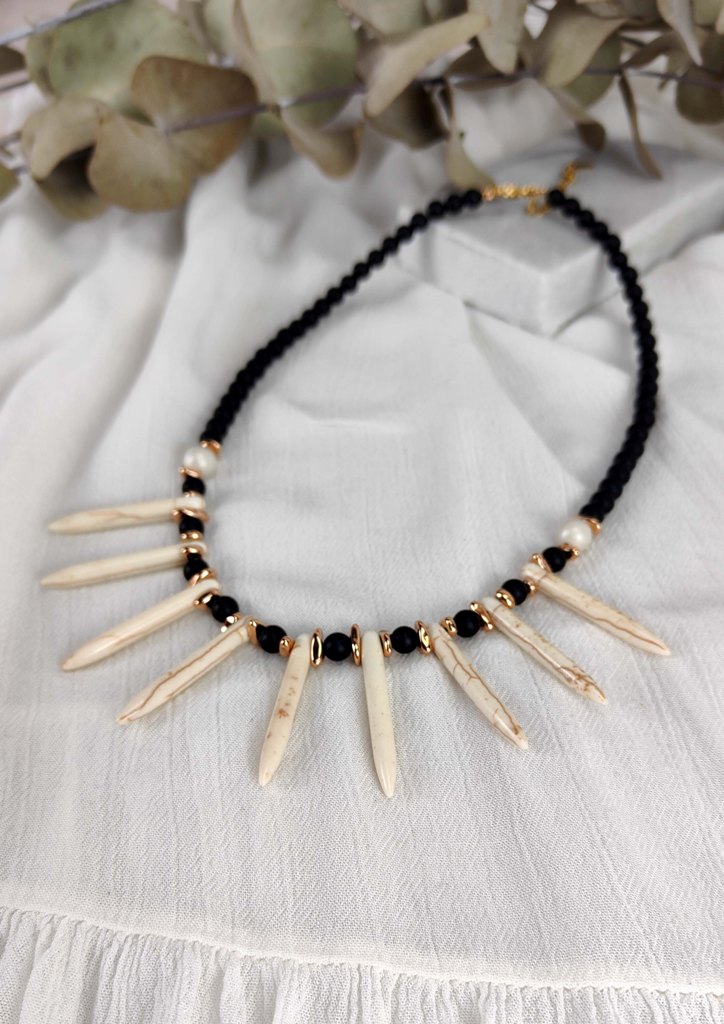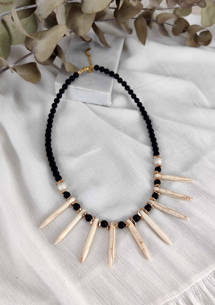 Κολιέ ατσάλι πέτρες ακτίνες χειροποίητο μαύρο