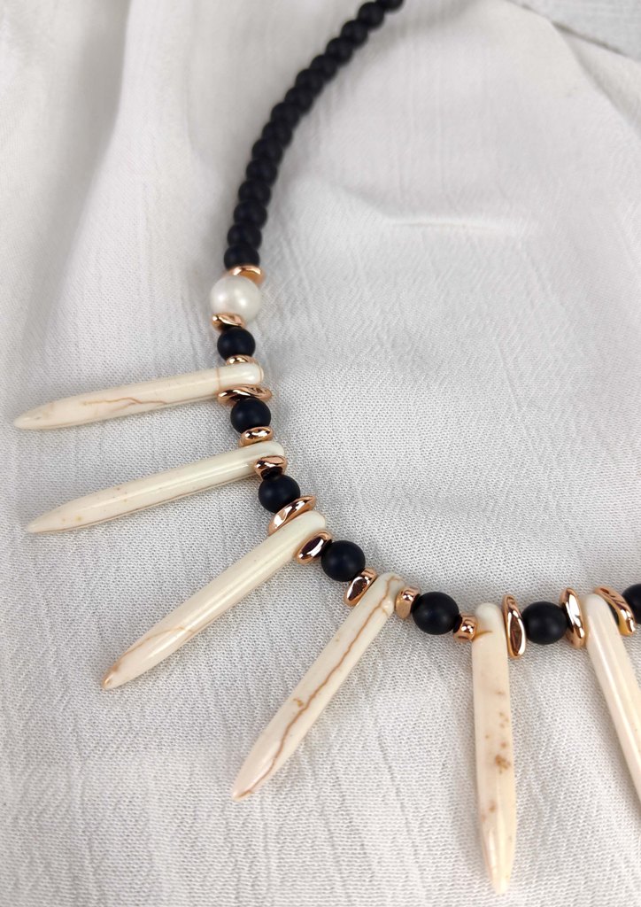• Πέτρες και χάντρες σε αποχρώσεις μαύρο-μπεζ-χρυσό