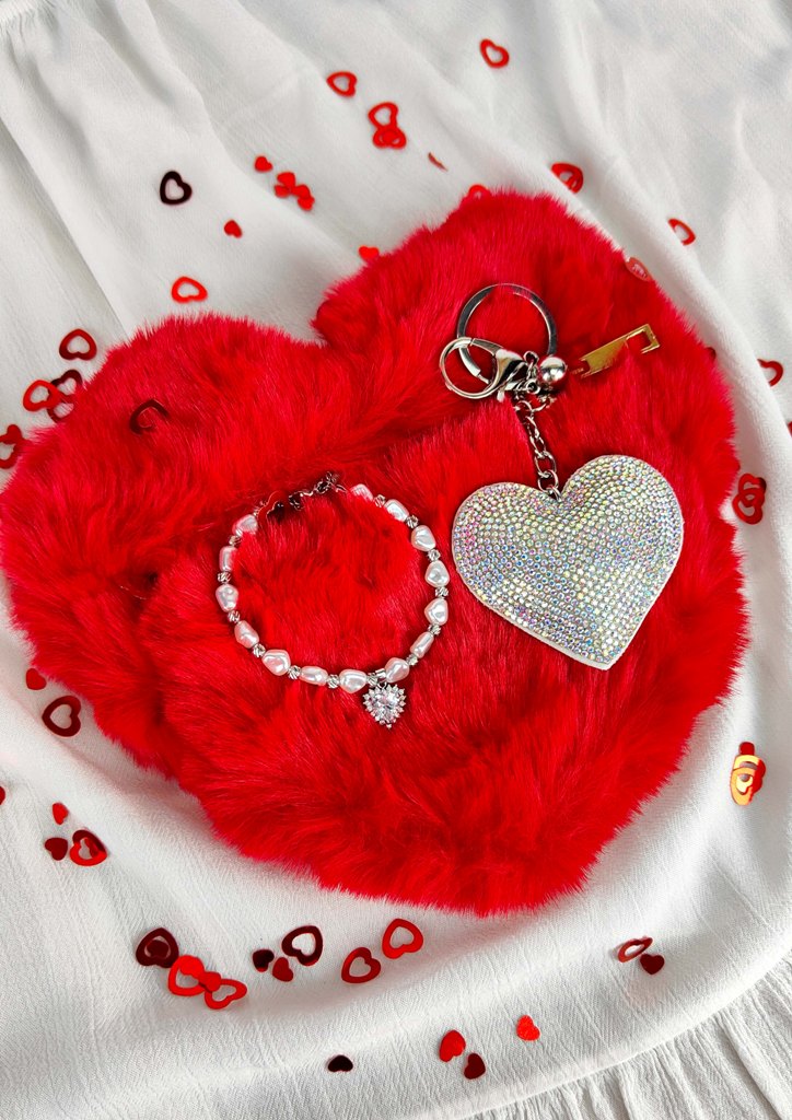- 1 bag charm-μπρελόκ καρδιά με στρας (ύψος 14cm)