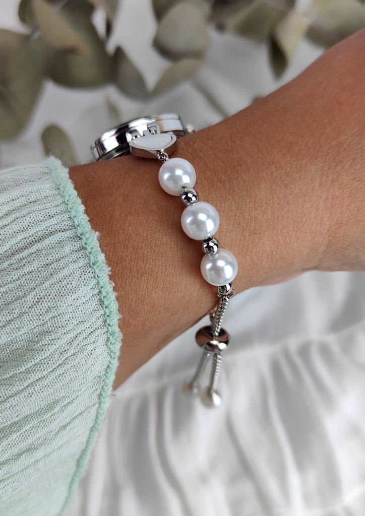Ρολόι ατσάλι βραχιόλι πέρλες ασημί
