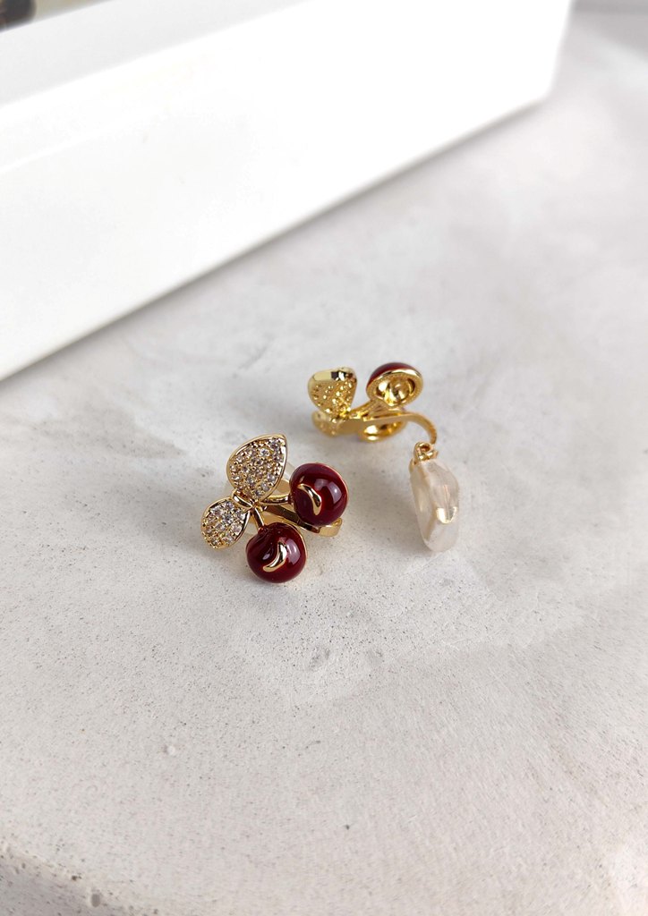 Σκουλαρίκια κλιπ ατσάλι κεράσι σμάλτο ζιρκόν