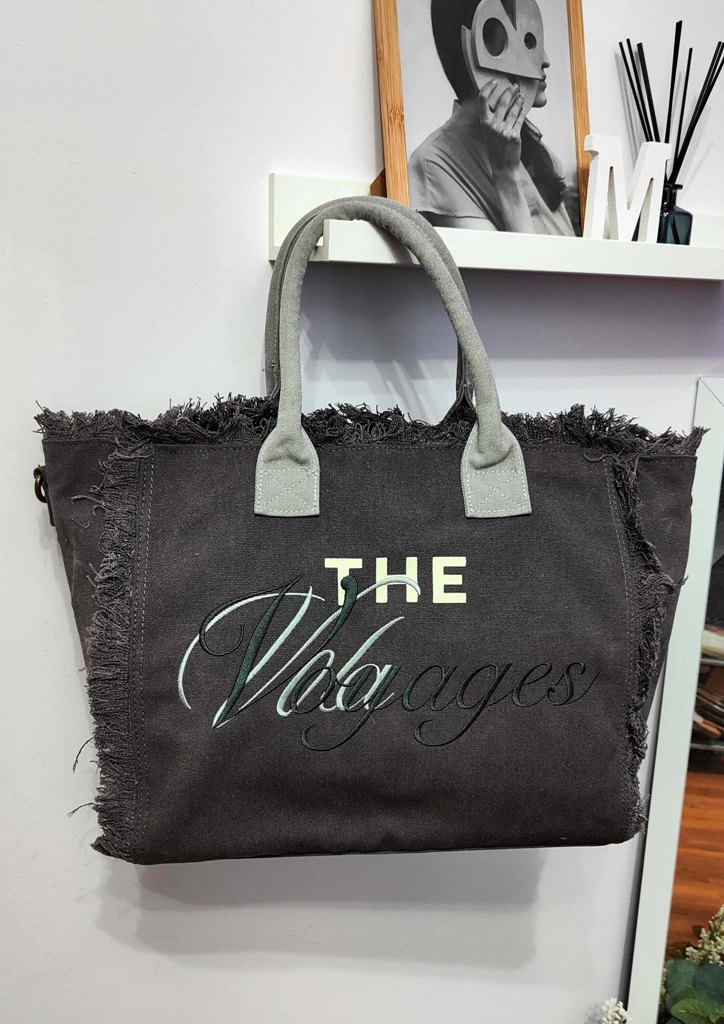 Τσάντα βαμβακερή ώμου Voyages γκρι