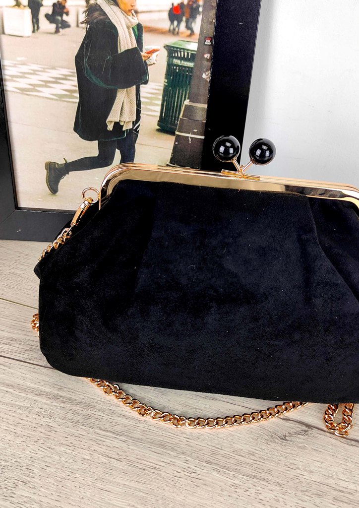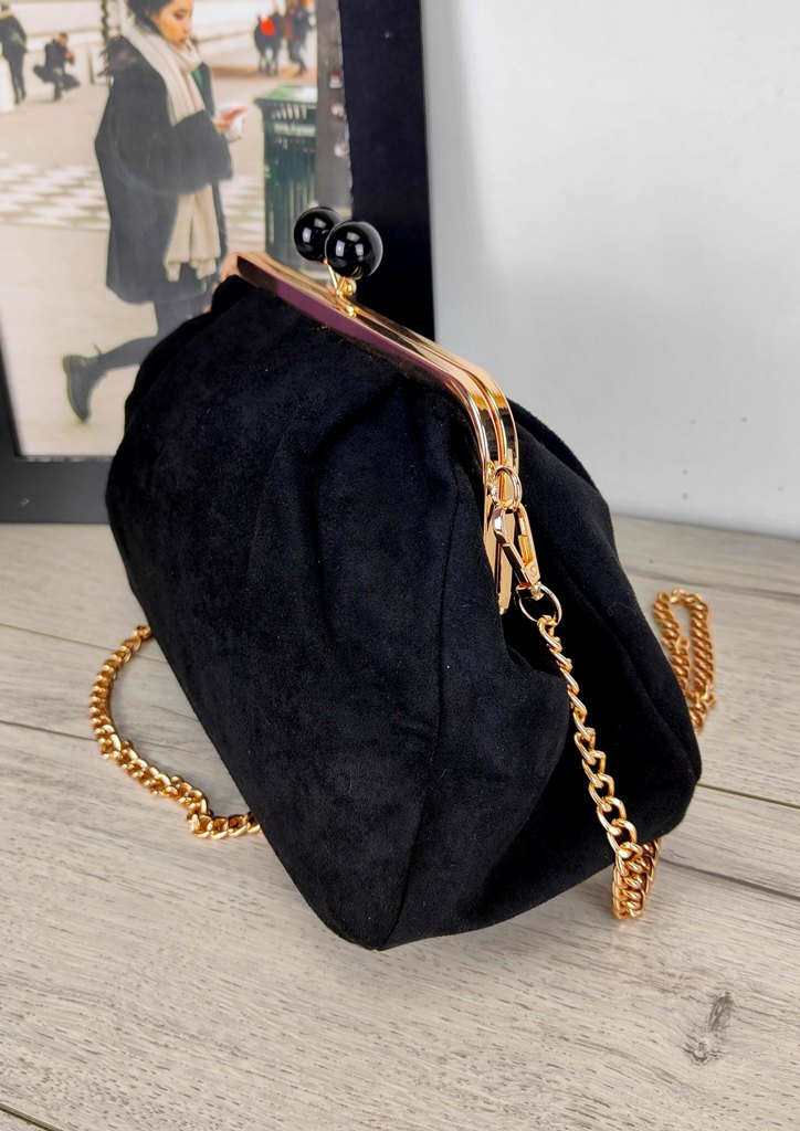 Τσάντα clutch suede αλυσίδα μαύρο