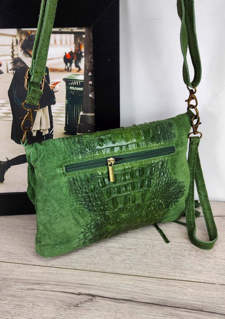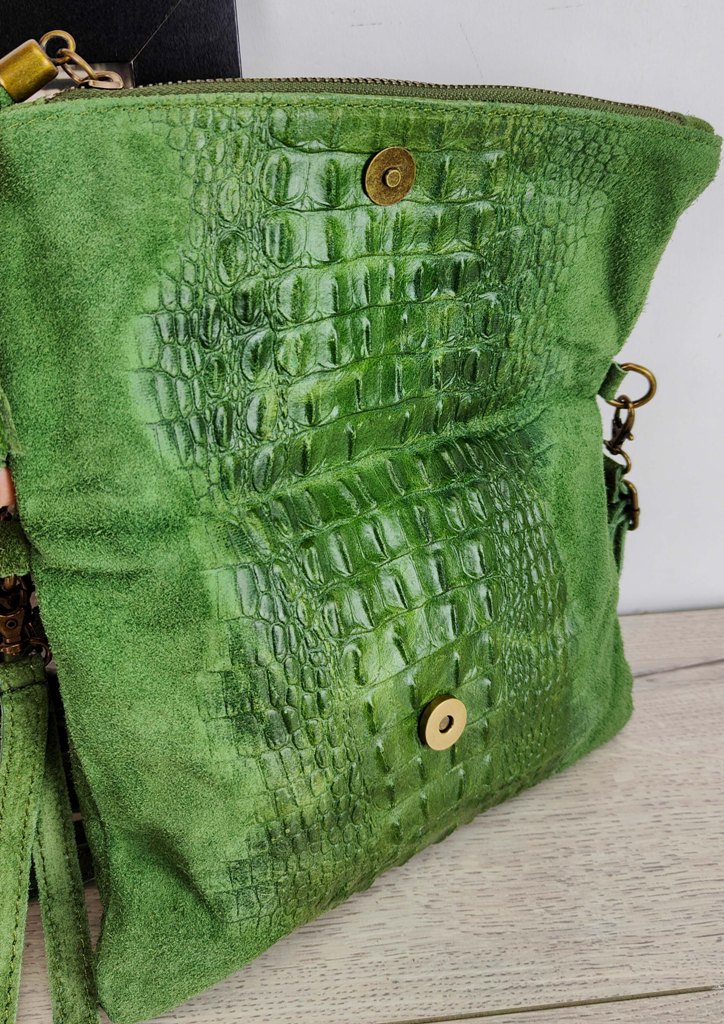 Τσάντα δερμάτινη φάκελος κροκό πράσινο