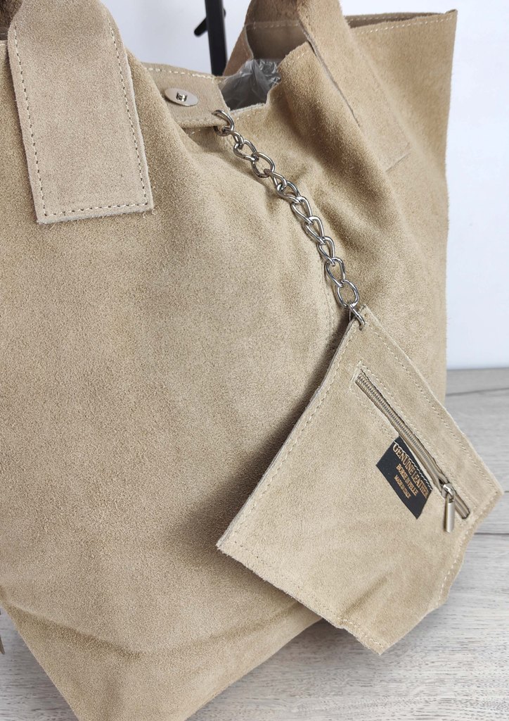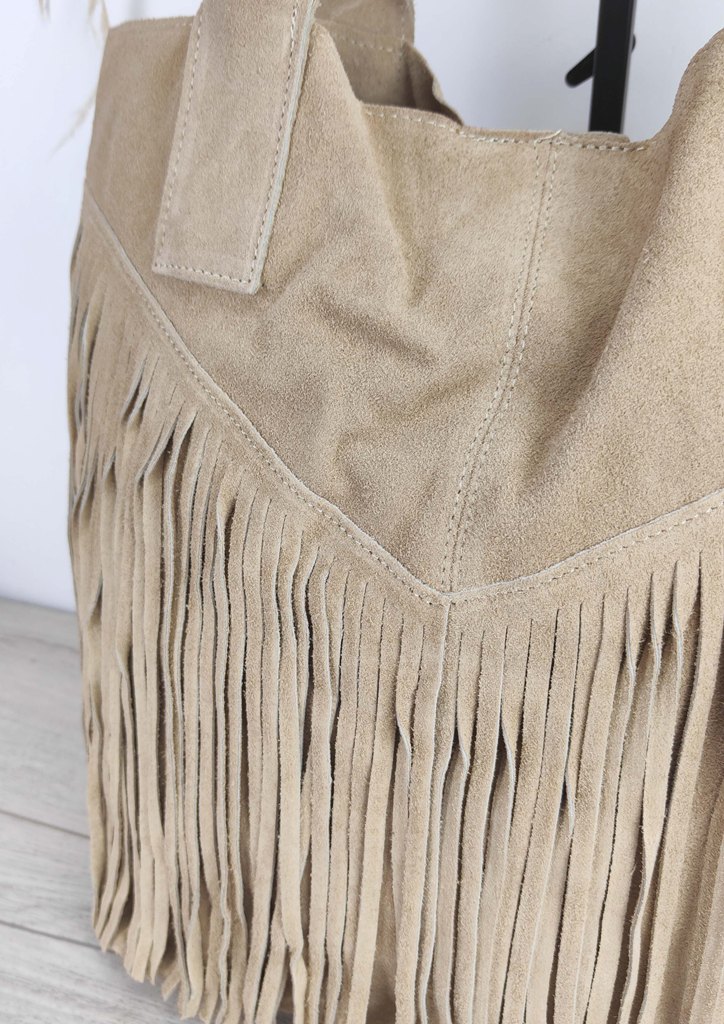 Τσάντα δερμάτινη κρόσσια τσαντάκι μπεζ