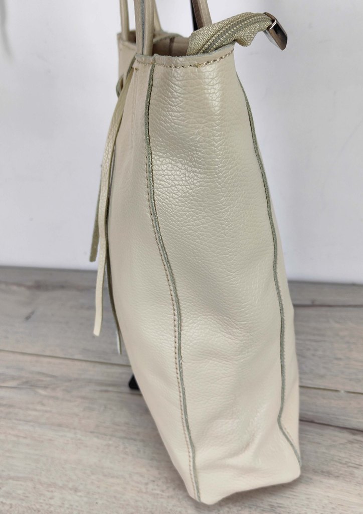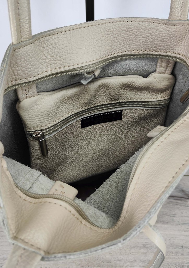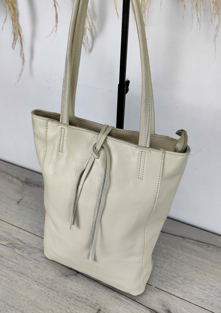 Τσάντα δερμάτινη ώμου λουράκια εκρού