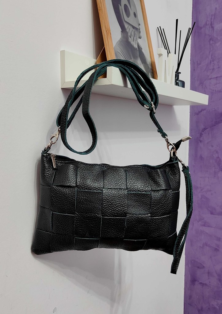 Τσάντα δερμάτινη ώμου πλέξη μαύρο