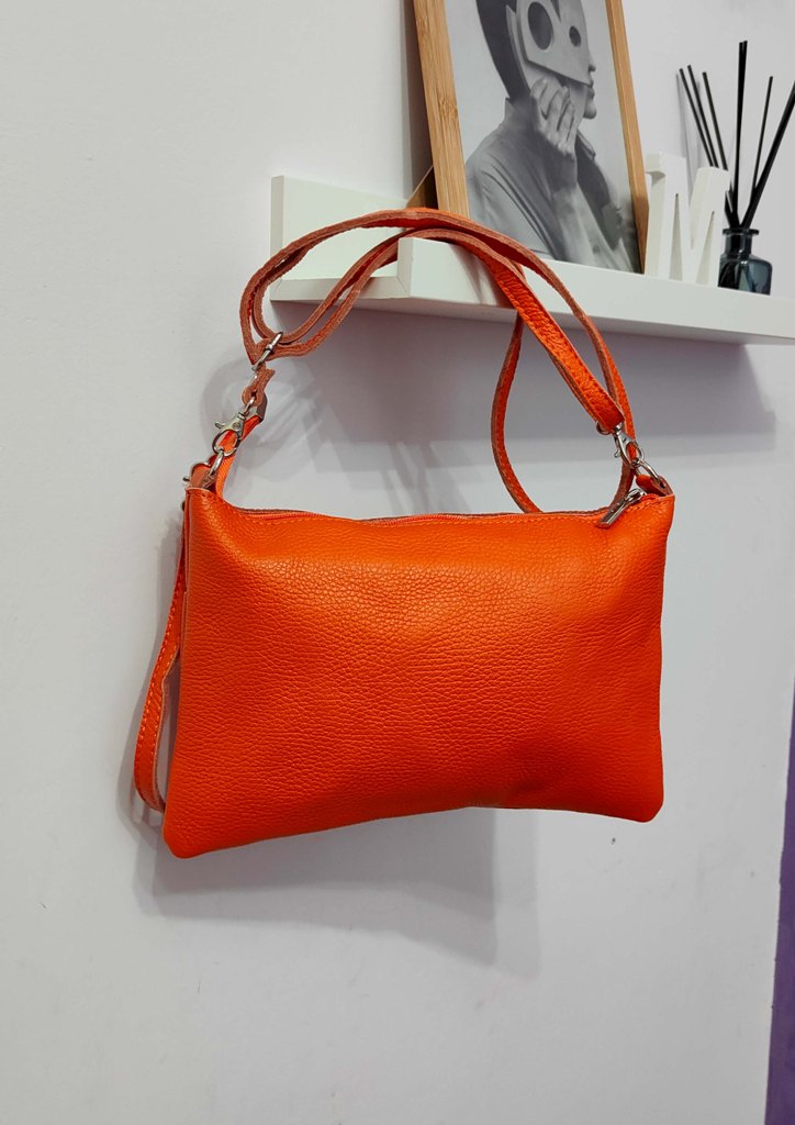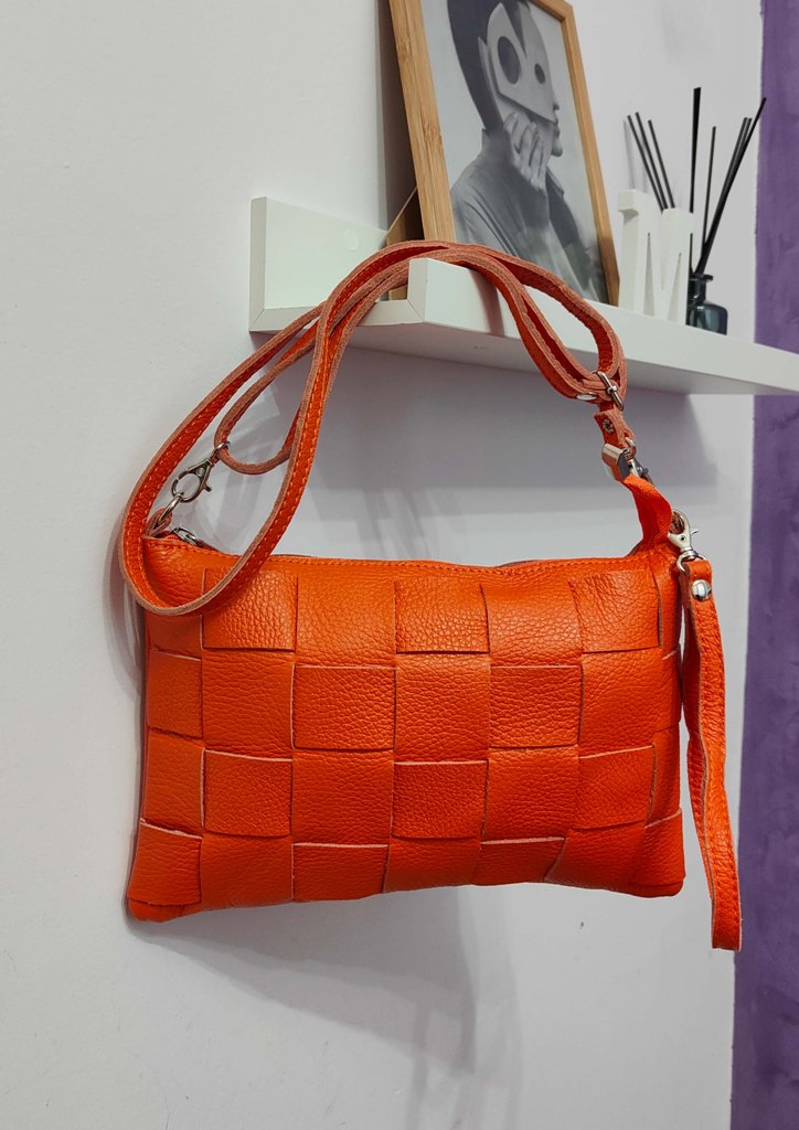 Τσάντα δερμάτινη ώμου πλέξη πορτοκαλί