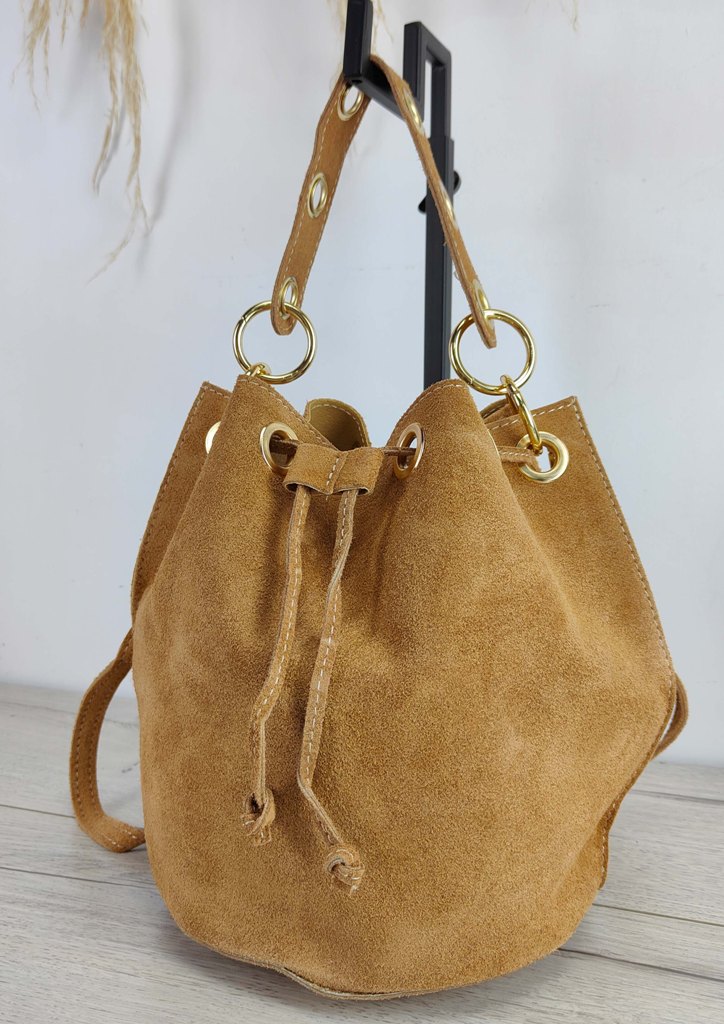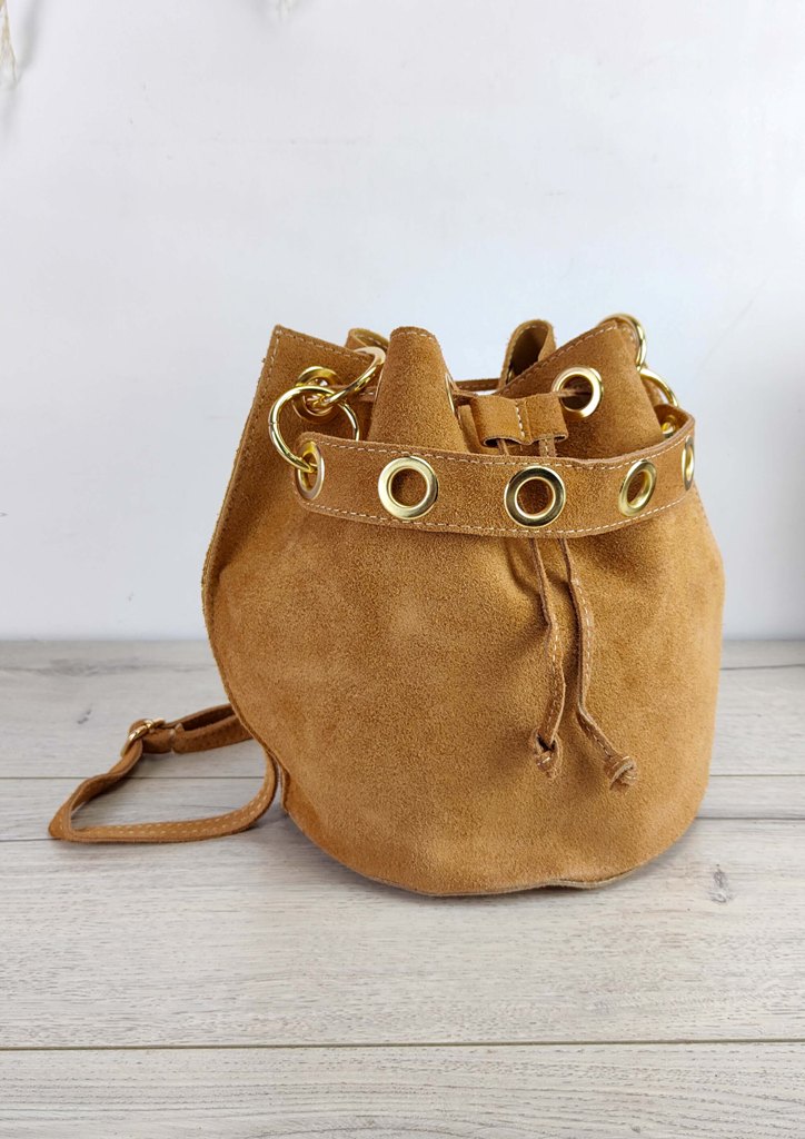 Τσάντα δερμάτινη πουγκί κρίκοι
