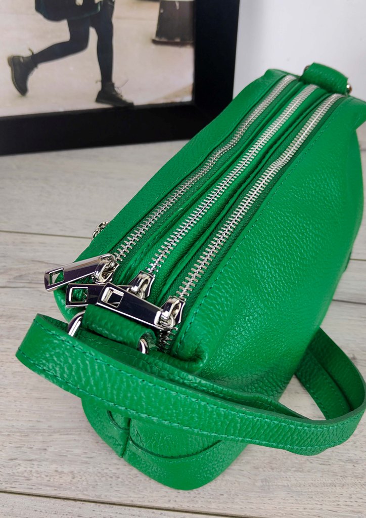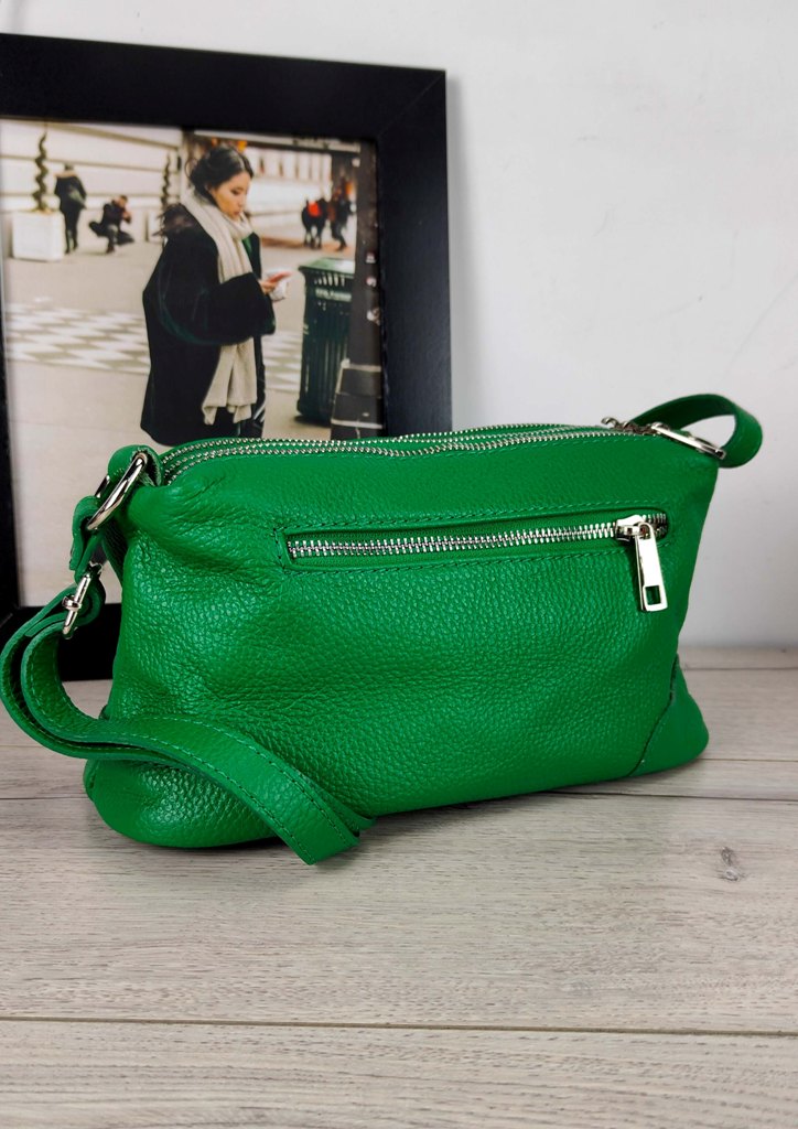 Τσάντα δερμάτινη τριπλό φερμουάρ πράσινο