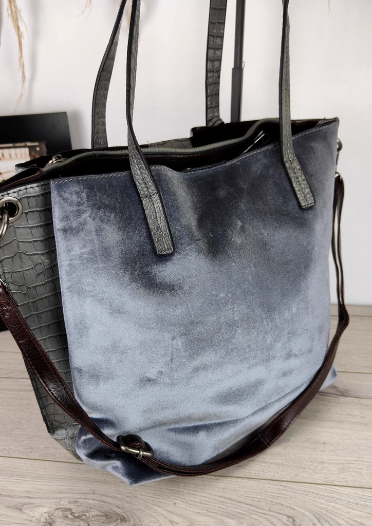 • Τσάντα ώμου από υψηλής ποιότητας δερματίνης και βελούδο