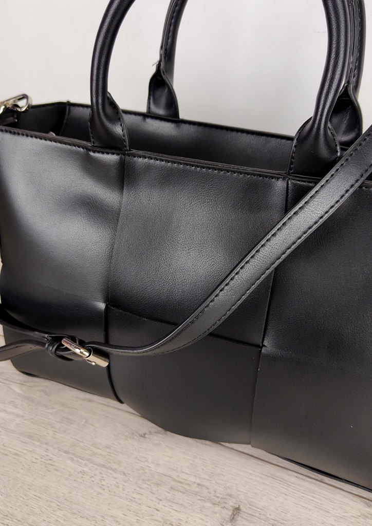 Τσάντα ώμου ορθογώνια πλέξη μαύρο