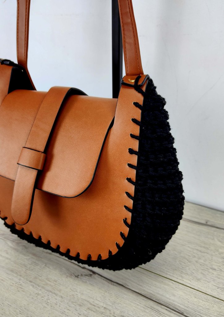 Τσάντα ώμου πλεκτή καπάκι μαύρο