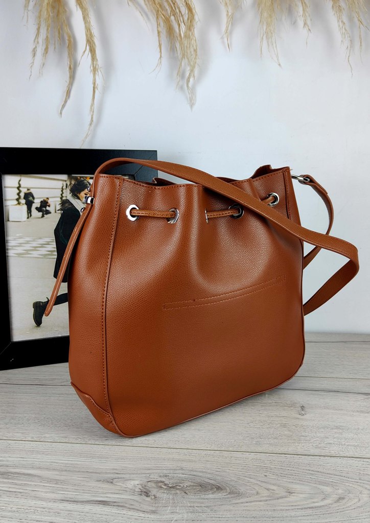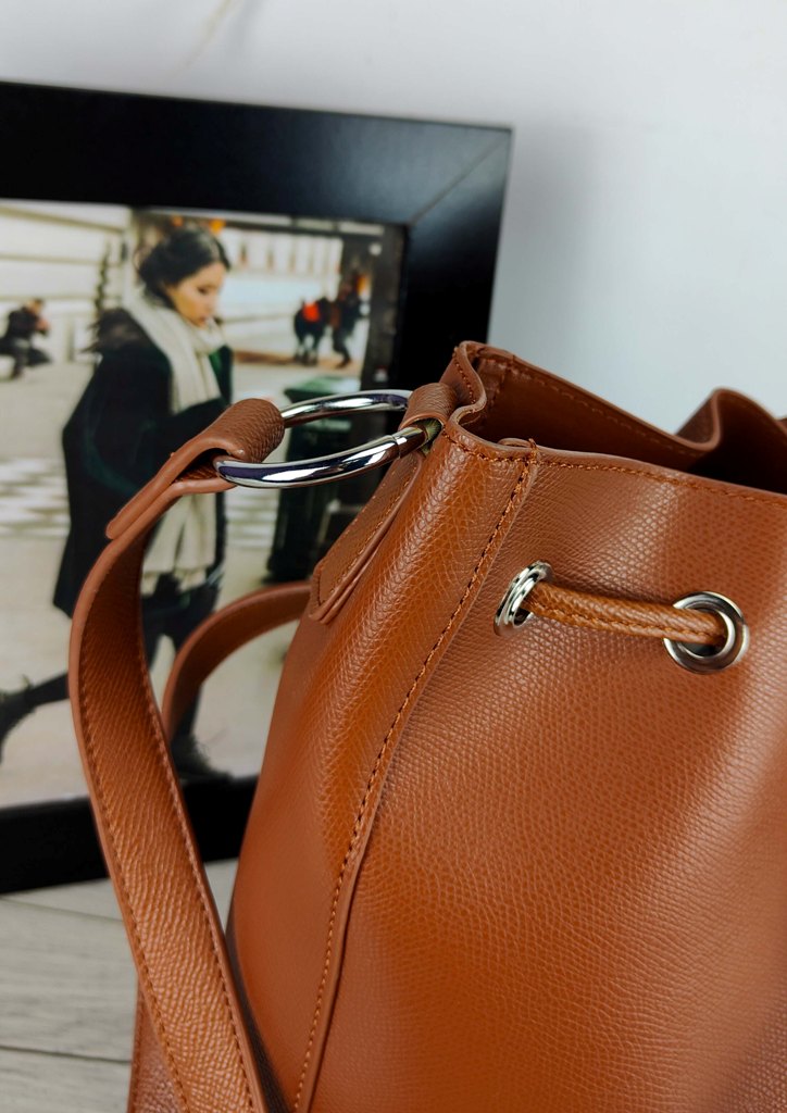 Τσάντα ώμου πουγκί minimal καφέ