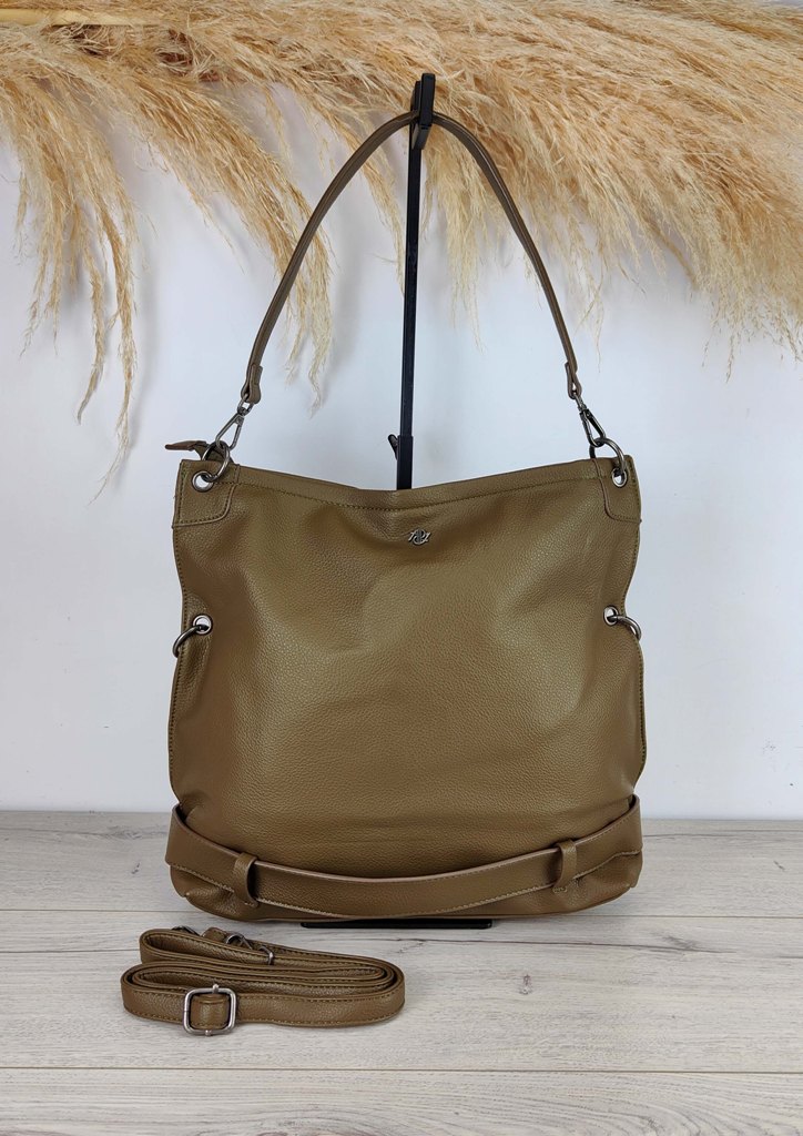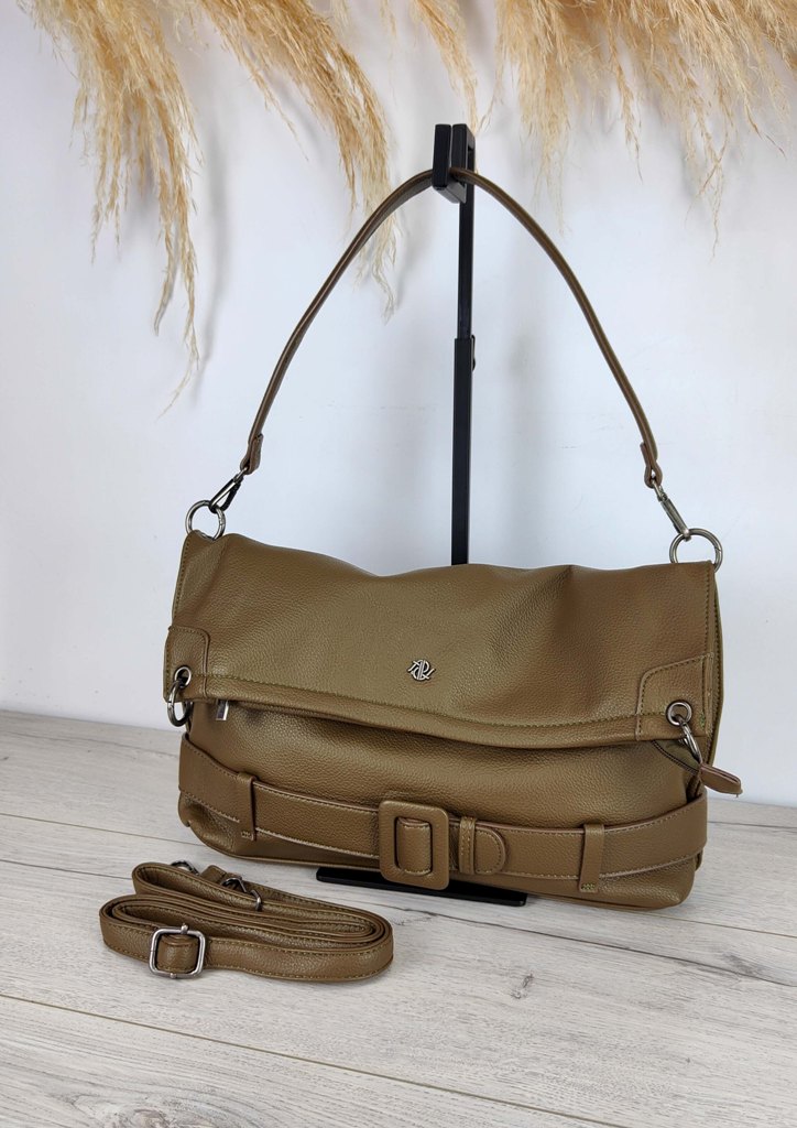 Τσάντα ώμου ζώνη λουράκια λαδί
