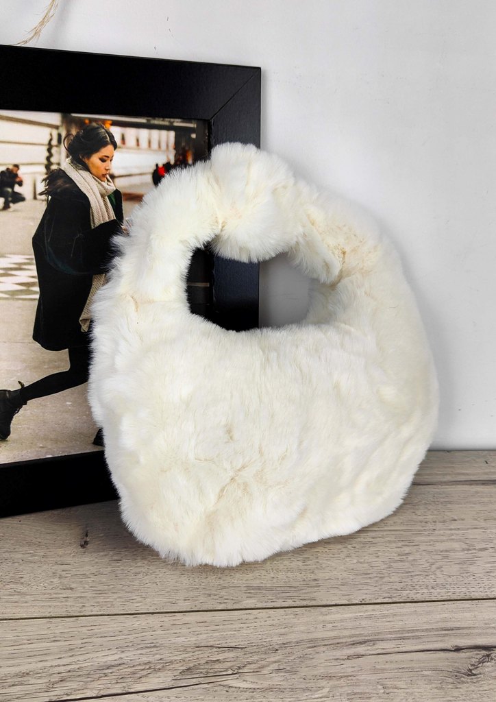 Τσάντα χειρός γούνα κόμπος λευκό