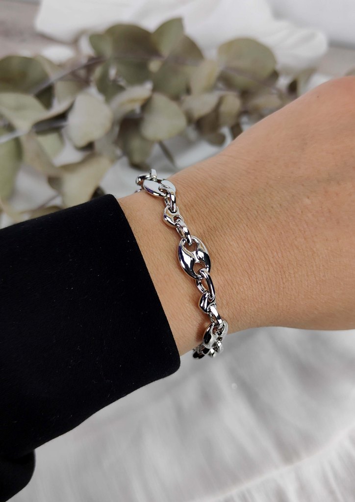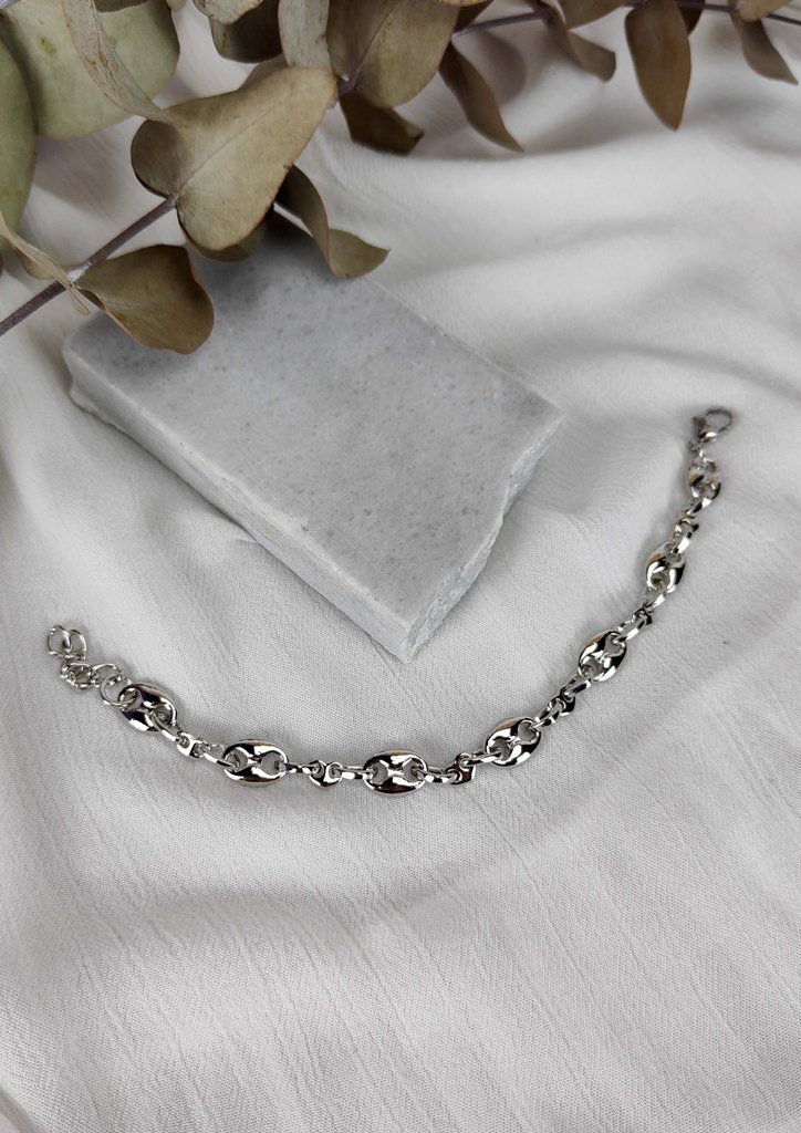 Βραχιόλι ατσάλι αλυσίδα κρίκοι καρδιές ασημί