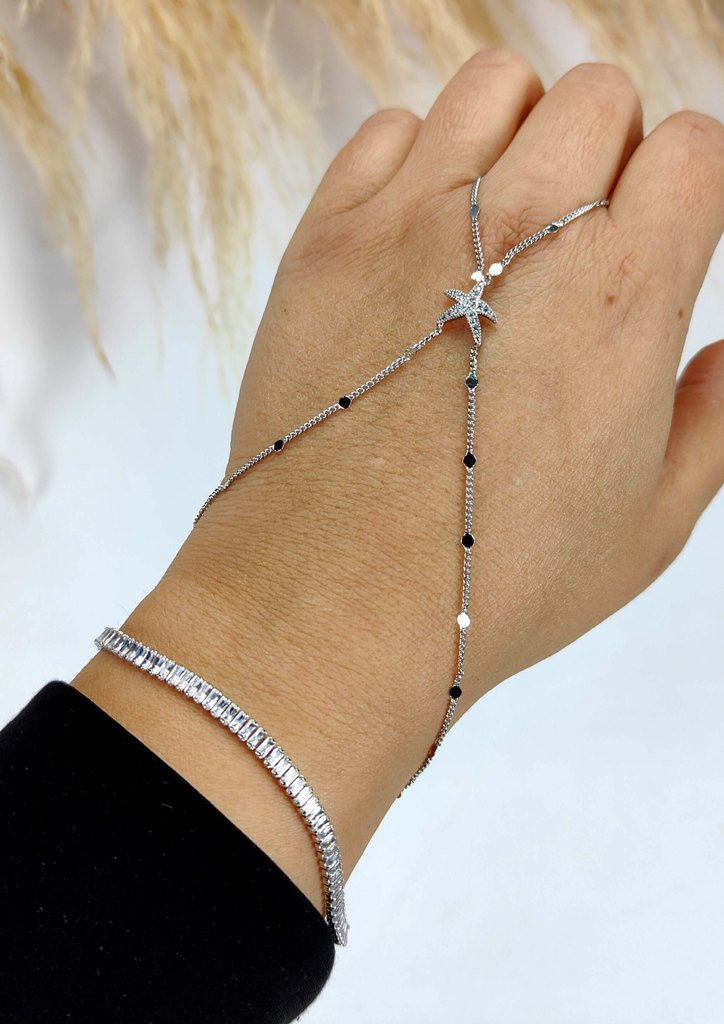 • Βραχιόλι που καταλήγει σε δαχτυλίδι με αστερία και στρας κατά μήκος