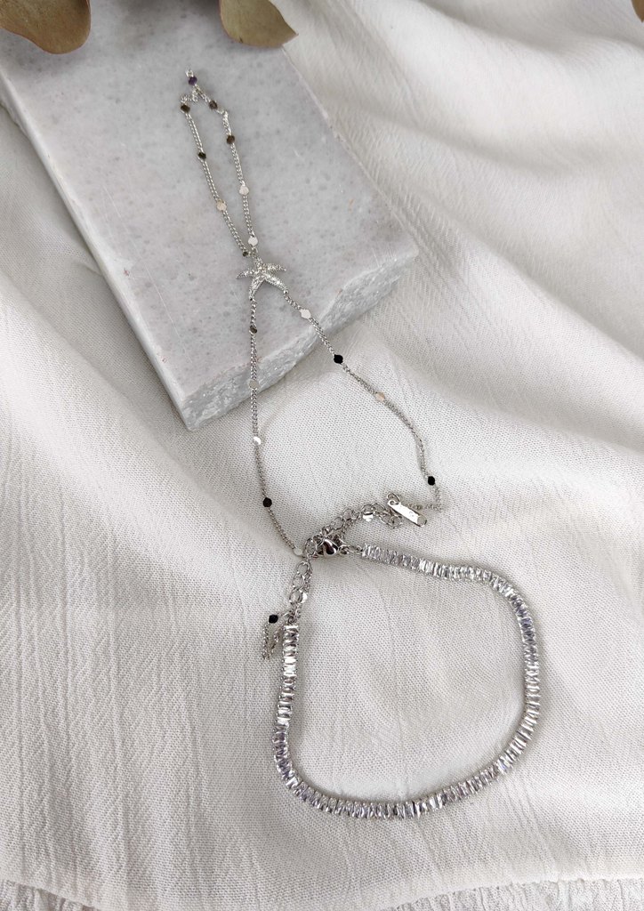 Βραχιόλι δαχτυλίδι ατσάλι αστερίας στρας ασημί